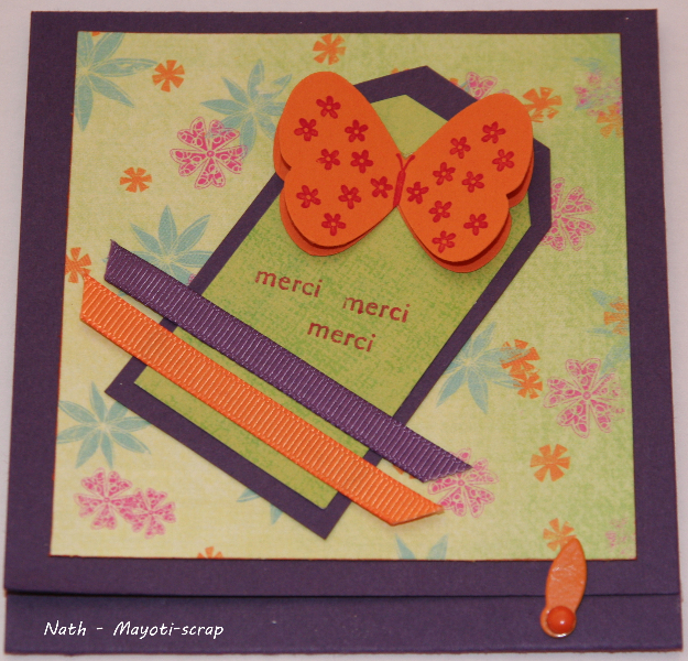 | Une petite carte pour une amie [de langue maternelle anglaise] qui avait organisé une soirée très réussie alors que sa santé n’était pas au mieux. Liste du matériel utilisé disponible en PDF. |