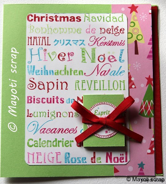 | À l’approche des fêtes, je vous propose quelques cartes de Noël et Bonne année. Pour commencer, une petite une carte à dominante vert clair, rose et turquoise, même si le rouge plus traditionnel est également présent. Suite dans la semaine. | |