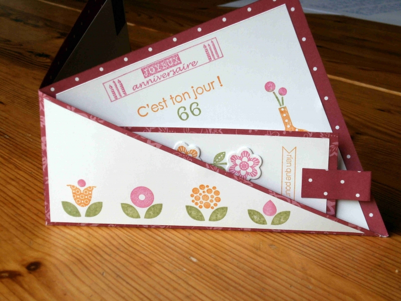 J’aime beaucoup ta carte, le pliage et les papiers choisis. Bises.